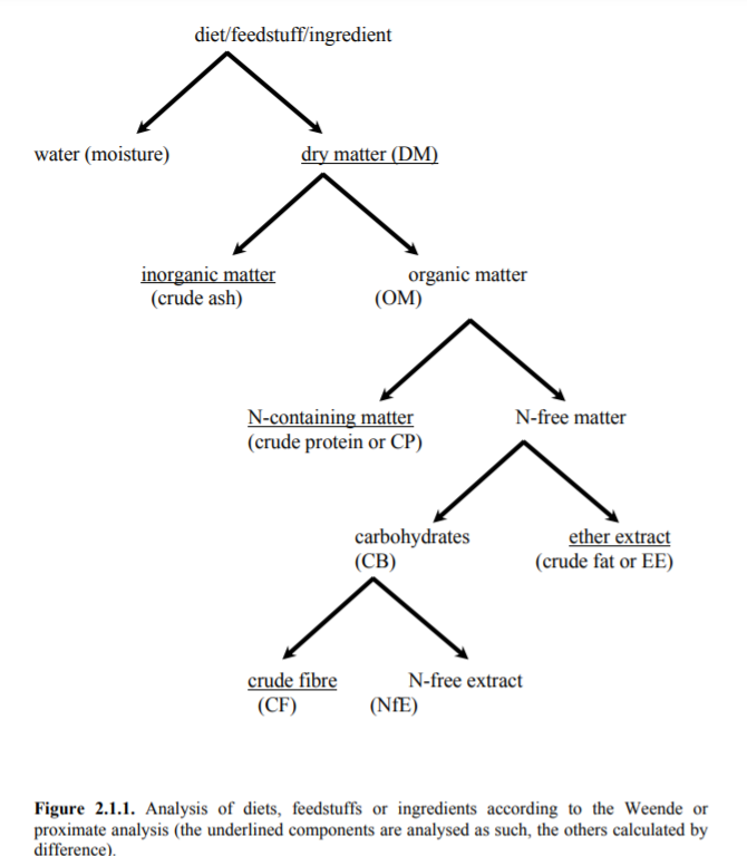 Belangrijk: de Weende-analyse is nooit heel nauwkeurig, het is altijd een ‘ongeveer waarde’ omdat de Analyse-percentages zelf ook nooit 100% precies zijn.