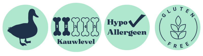 De Vleesstrips Eend zijn veelzijdig inzetbaar: als gezonde beloning, als tussendoortje of tijdens de training. Dankzij de natuurlijke samenstelling zijn ze ideaal voor honden die andere vleessoorten niet verdragen.