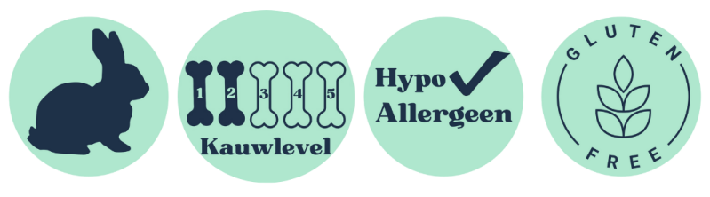 Zelden allergieën veroorzaakt – Omdat konijn minder vaak in hondenvoeding wordt gebruikt dan kip of rund, is het een populaire keuze bij eliminatiediëten of voor honden met voedselallergieën.