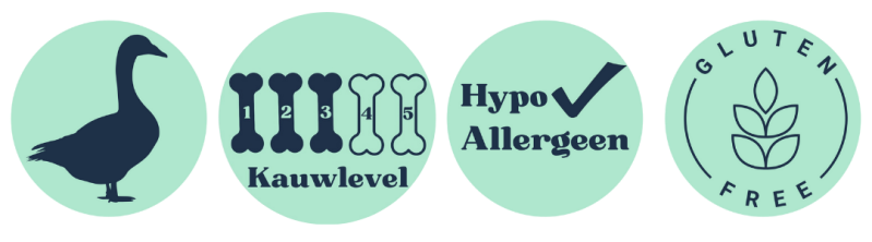 De ganzennekken zijn 100% natuurlijk en graanvrij. De ganzennekken zijn ook niet chemisch behandeld en bevatten geen geur-, kleur- of smaakstoffen of andere toevoegingen zoals conserveringsmiddelen.